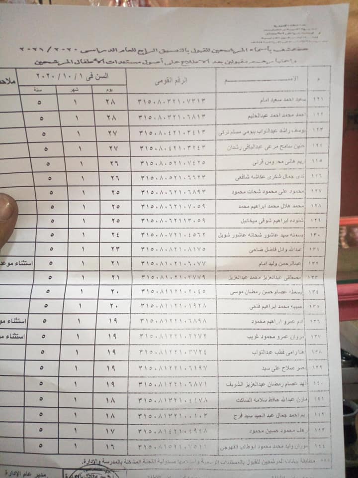 كشوف أسماء الطلاب المتقدمين للقبول بمدرسة الإمام على الرسمية لغات بالبدرشين وذلك بعد نتيجة تنسيق القبول الرابع