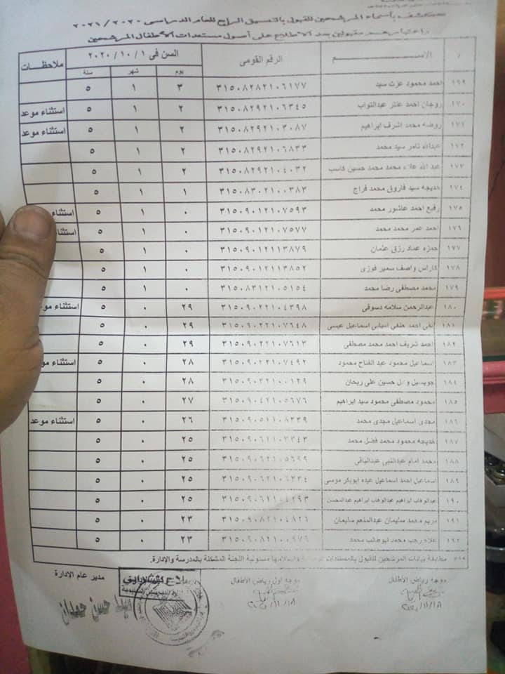 التنسيق الرابع لمرحله رياض الأطفال بمدرسه الإمام علي الرسمية للغات وكشوف كاملة لأسماء الطلاب المقبولين