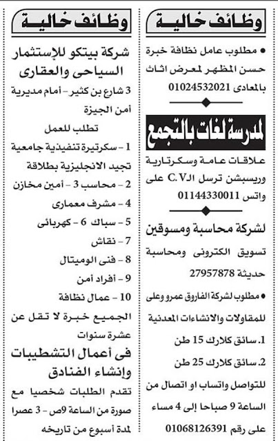 وظائف خالية منشورة بجريدة الأهرام