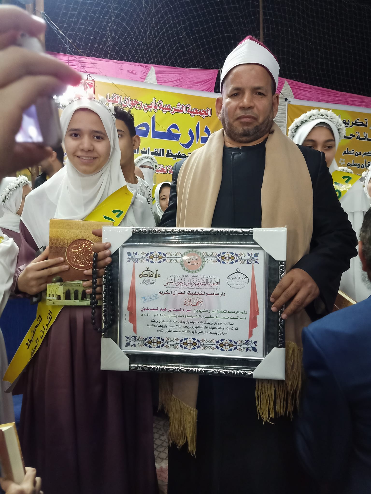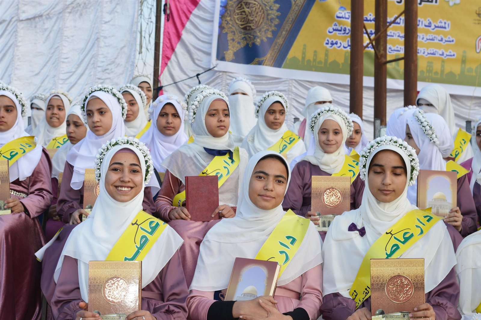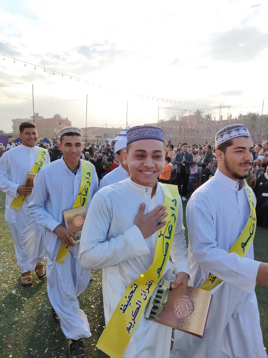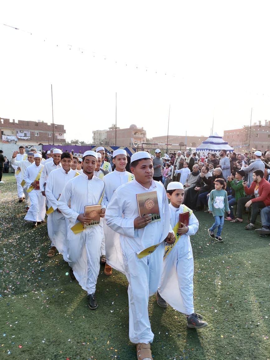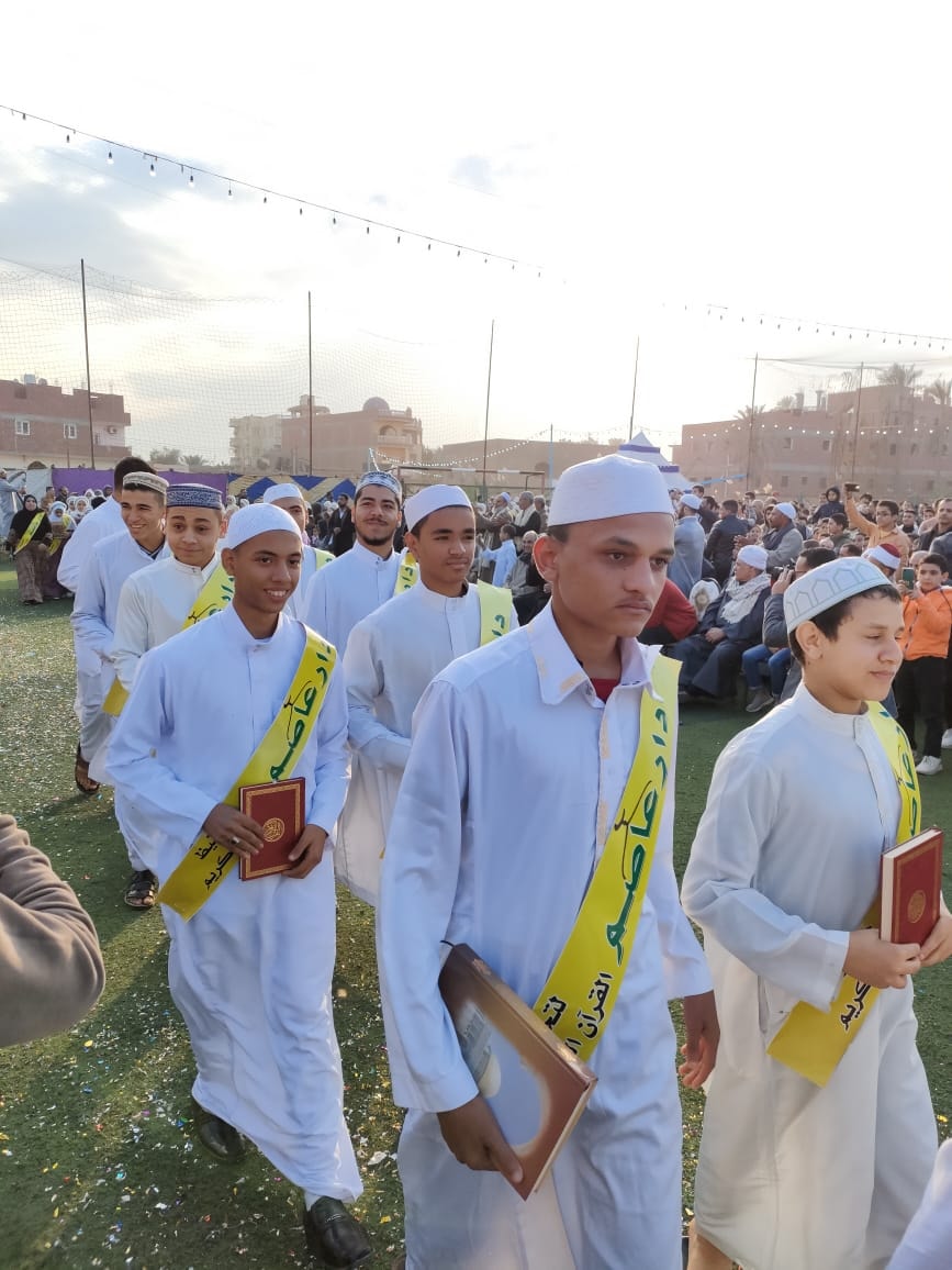 وخلال الحفل، قادت معلمات القرآن بـ "دار عاصم" التابع للجمعية الشرعية بالقرية، استعراضا مهيبًا من الـ115 حافظا للقرآن، أمام الحضور الذي ملأ ملعب كرة قدم بسعة 11 لاعبا.