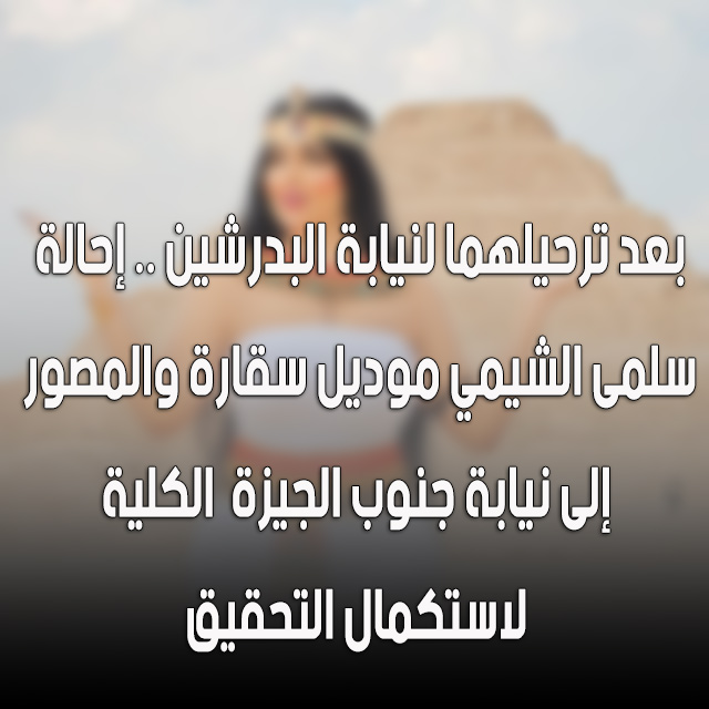 رحلت الأجهزة الأمنية كلًا من "سلمى الشيمي" الشهيرة بـ"موديل سقارة"، و"حسام محمد" مصور الـ"فوتوسيشن" إلى النيابة الكلية للتحقيق معهم، حول الواقعة، والوقوف على ظروفها وملابساتها.