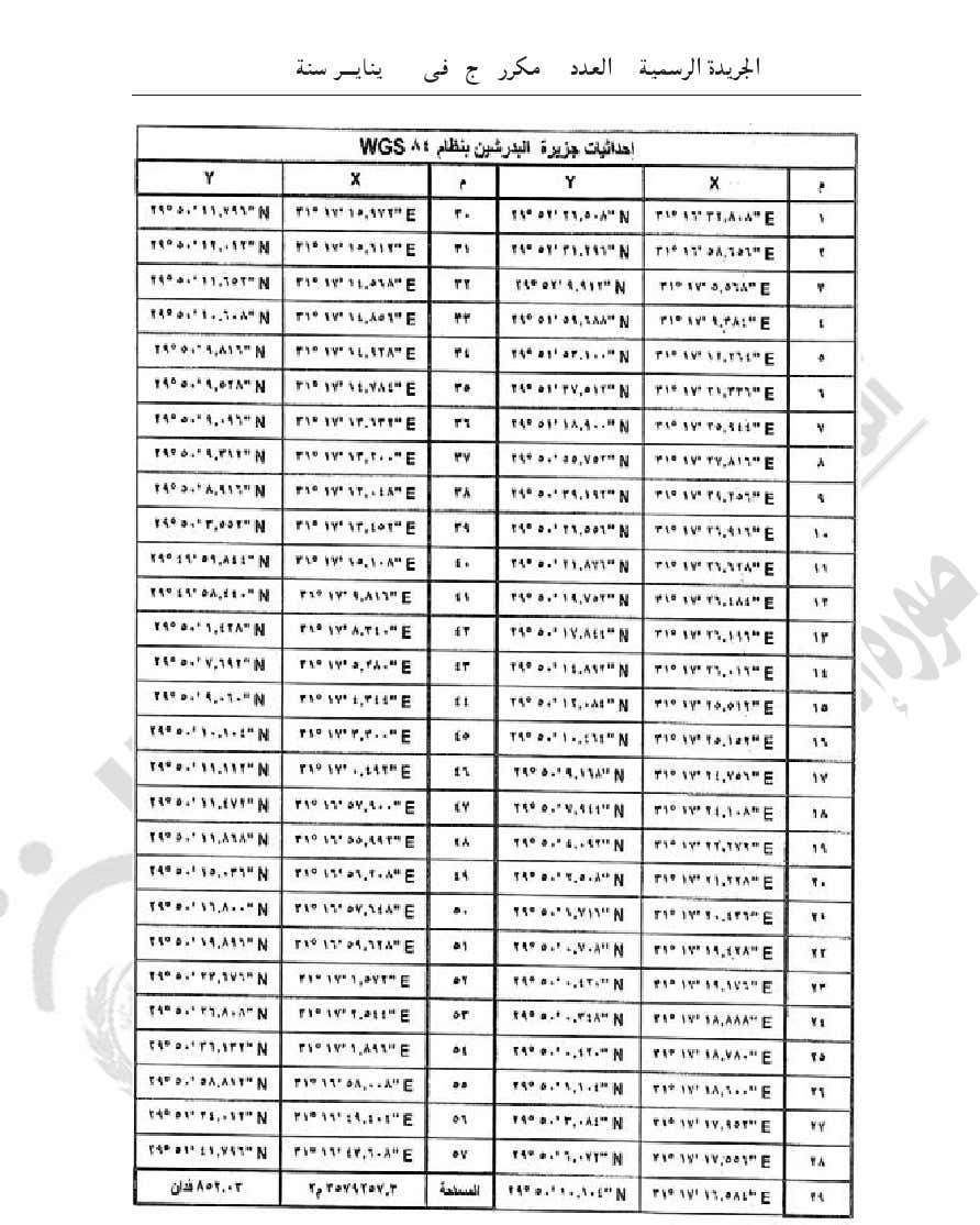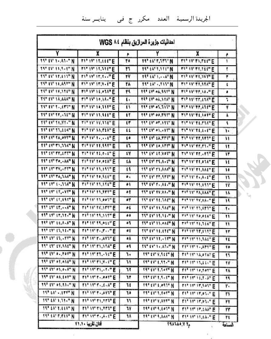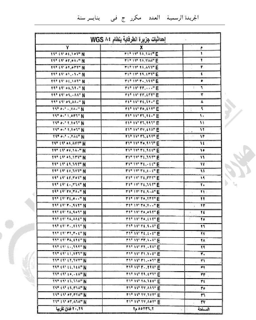 وينص القرار على أن يودع نصه وحوافظ بالأبعاد والمساحات التفصيلية لتلك الجزر بمكتب الشهر العقارى المختص بغير رسوم، ويترتب على هذا الإيداع آثار الشهر القانونية.